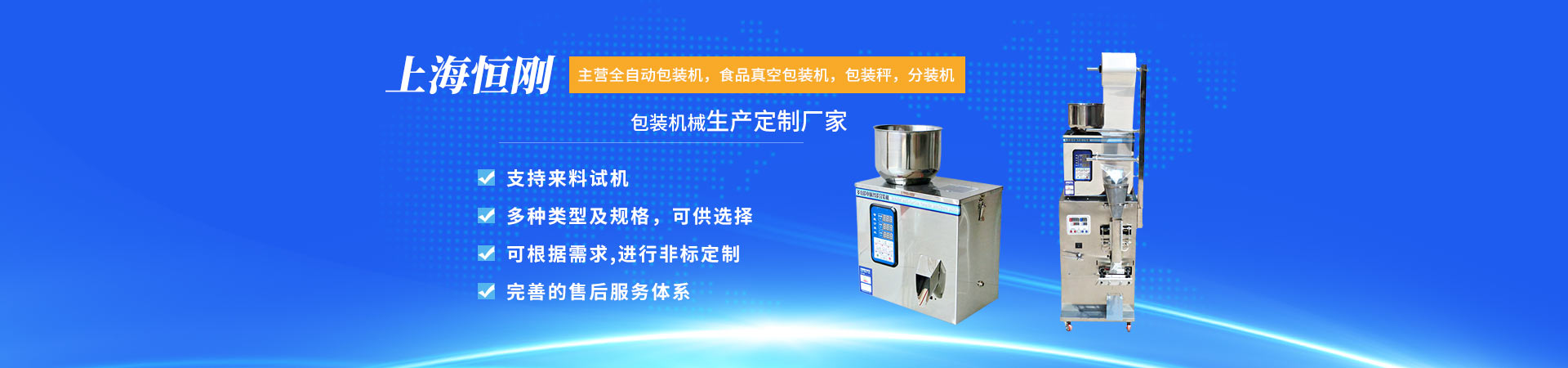上海恒剛儀器儀表有限公司是一家專注于包裝秤,包裝機,封口機,分裝機,真空包裝機,膏體灌裝機,粉末包裝機,顆粒包裝機,液體灌裝機,食品包裝機,肥料包裝秤,糧食包裝機,自動定量包裝秤,小型包裝機,電子包裝秤,外抽式真空包裝機,雙室真空包裝機,單室真空包裝機,電子流量秤,連續(xù)封口機,自動封口機,塑料袋封口機等機械設備生產和銷售的專業廠商,公司位于風景秀麗的松江工業區,產品銷往全各地。公司自成立以來,始終堅持以人才為